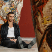 Although Zhao has mainly hosted screenings in the past, his talent for curating visual arts exhibit is evident. “Specificity—truly understanding each work—shaped many decisions,” Zhao said. “Lynne Smith suggested installing her piece closer to the floor to emphasize its connection to the earth. Jiayue Yu’s works are positioned beside the windows because they reference a distinctive type of Japanese glass. One of M. Torres & Eden Kinkaid’s pieces is placed directly on the floor to create a transitional sensation that echoes the playfulness within their collage series. These small gestures were important: they allowed the space to respond to the works, rather than the other way around.”