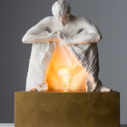 Kathleen Ryan became famous for making abject sculptures that imitated the decay of fruit being consumed by mold. They were Instagrammable and easy to sell. In a surprising turn of events, Ryan has now reinvented herself. Shell is a legitimately exciting sculpture, not by way of leaning on gore but rather by being tempting. Karma made a clever and rare decision to show only one large object, and it is one that deserves all the attention. Ryan made a shell-like sculpture of steel from used car parts, in different shades dictated by the severity of rust on their surface. The inner part of the shell is made with smooth, soft-looking baby pink quartz. This object takes upon itself the challenge engrained at the root of sculpture making: it’s made to be seen from all sides. Even more, Ryan made Shell to be seen also from within, from various angles. As a result we get something rich and intriguing, full of contrasts, and quite gripping.