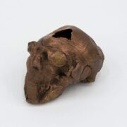 Zac Hacmon’s Miki (2025), looks like a ventilation duct looping back on itself. Miki is the result of Hacmon’s collaboration with a housekeeper and caregiver named Miki, now in her 80s, who has spent much of her life doing domestic work for a family in Los Angeles. Miki’s voice emanates from a gap in the duct, accompanied by the warm orange glow of a hearth. She sings El Corrido de Durango, a song from her hometown that her grandfather once sang to her father as a lullaby. The song, dating back to Mexico’s revolutionary period, recounts the deeds of Pancho Villa, a revolutionary figure also originally from Durango. A message passed down through the generations, Miki’s voice keeps history, heritage, and memory alive despite great distances of time and space.