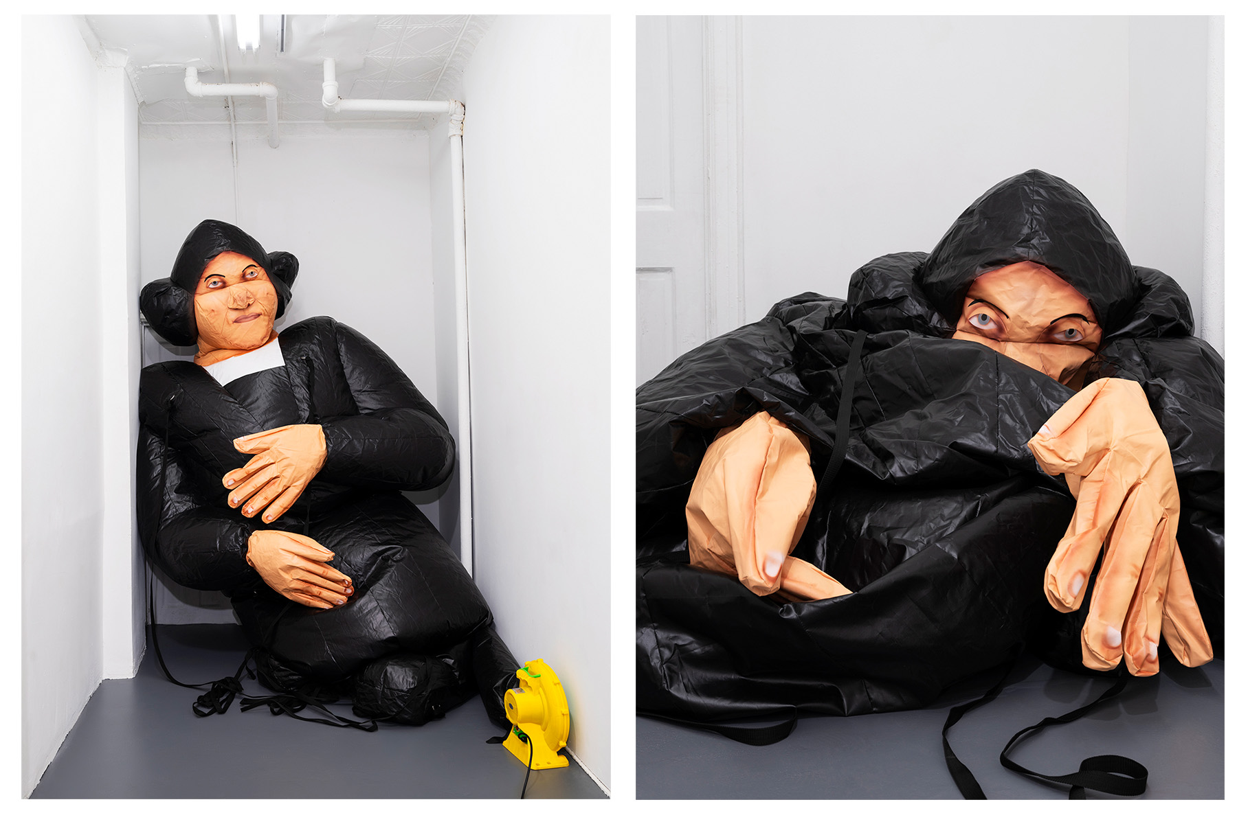 The message is clean. It breathes in and out and that is all, giving it an air of purity worthy of Minimalism. But at the same time, The Shadow of Colonialism is complicated and layered. In it, artist Jamie Martinez co-founder of the artist-run space, embraces the absurdity of our present moment. Through his imaginative creation of the “doll” and its repetitive comedic mash-up, alongside clay sculptures based on pre-Columbian archetypes, Martinez, born in Ibagué, Colombia, and raised in the United States, is attempting to understand not victimization but the mysterious present we all live in, astride a couple of beleaguered continents similarly grappling with labored breath and long colonial shadows.