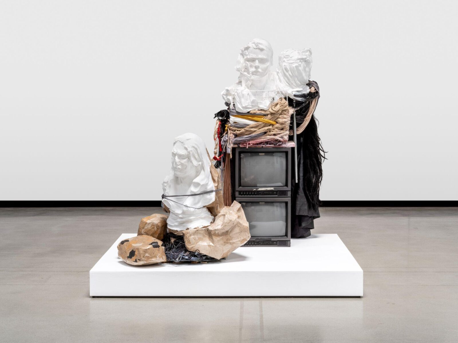 Created to disturb traditional feminine vantages, Isabelle Albuquerque beautifully presents Orgy For Ten People In One Body, an erotic and widely expressive form of self-portraiture which initially exhibited ten distinct headless renderings at Jeffrey Deitch in New York two years ago. Plucked from that exhibit and showcased here is Number 10, a life-scale cast of Albuquerque’s own body made out of beeswax, human hair, walnut, and rope—whose wrists are tied in bondage and head turned, presumably in shame—examining themes such as collective identity, transhumanism, and the emanation of desire. One of the few Los Angeles-based artists represented in It Smells Like Girl, Albuquerque reclaims the nude by provoking viewers with her uncanny transmutation of female anatomy, empowering said body while also leaving questions of consent and pleasure in doing so.