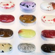 Lauren Cohen (artist or gallerina?) and her “The Art World Chess Set,” 2024. Ceramic and felt. Photographed by Hollan Rainwater. Courtesy of the artist.