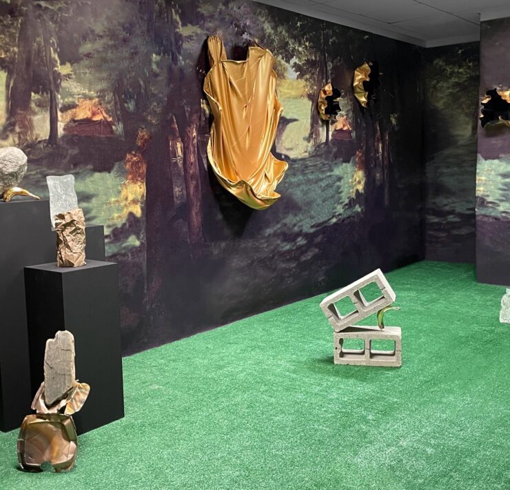 2. Peter Gynd’s “Form and Formless” in Rooms 4011 & 4013 features the work of performance/installation artist, Katya Grokhovsky and installation artist, Taezoo Park. Gynd “set out to create a dialogue between the architecture, the artworks and the exhibitions visitors.”Park’s pile of electronics is seduces the viewer while Grokhovsky’s feminist installations are engaging and Disorienting simultaneously. Her performance “Slow Dance with Me” was my favorite “transaction” at Spring Break. Grokhovsky and two other performers offered free slow dances to the audience and wore t-shirts to advertise the offering. Katya Grokhovsky will be performing another work “Status Update” 4-7pm Saturday in rooms 4024-4026.