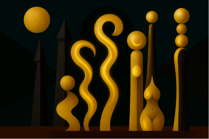 The paintings exude a hypnotic atmosphere that does not respond to the anxieties of narrative; rather, it is the flexible, organic, and sinuous forms that capture our attention and do not release it until they plant a question mark in our minds. It is not so much a matter of asking what those figure-things wandering across the landscape are, but of who we are, accustomed as we are to a certain perceptual inertia.
