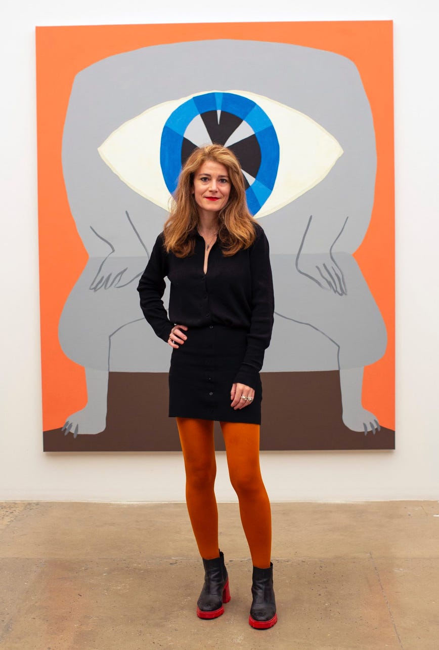 Sozita Goudouna in front of Mia Enell’s “Cyclopmedia,” 2023. Courtesy of Mia Enell.