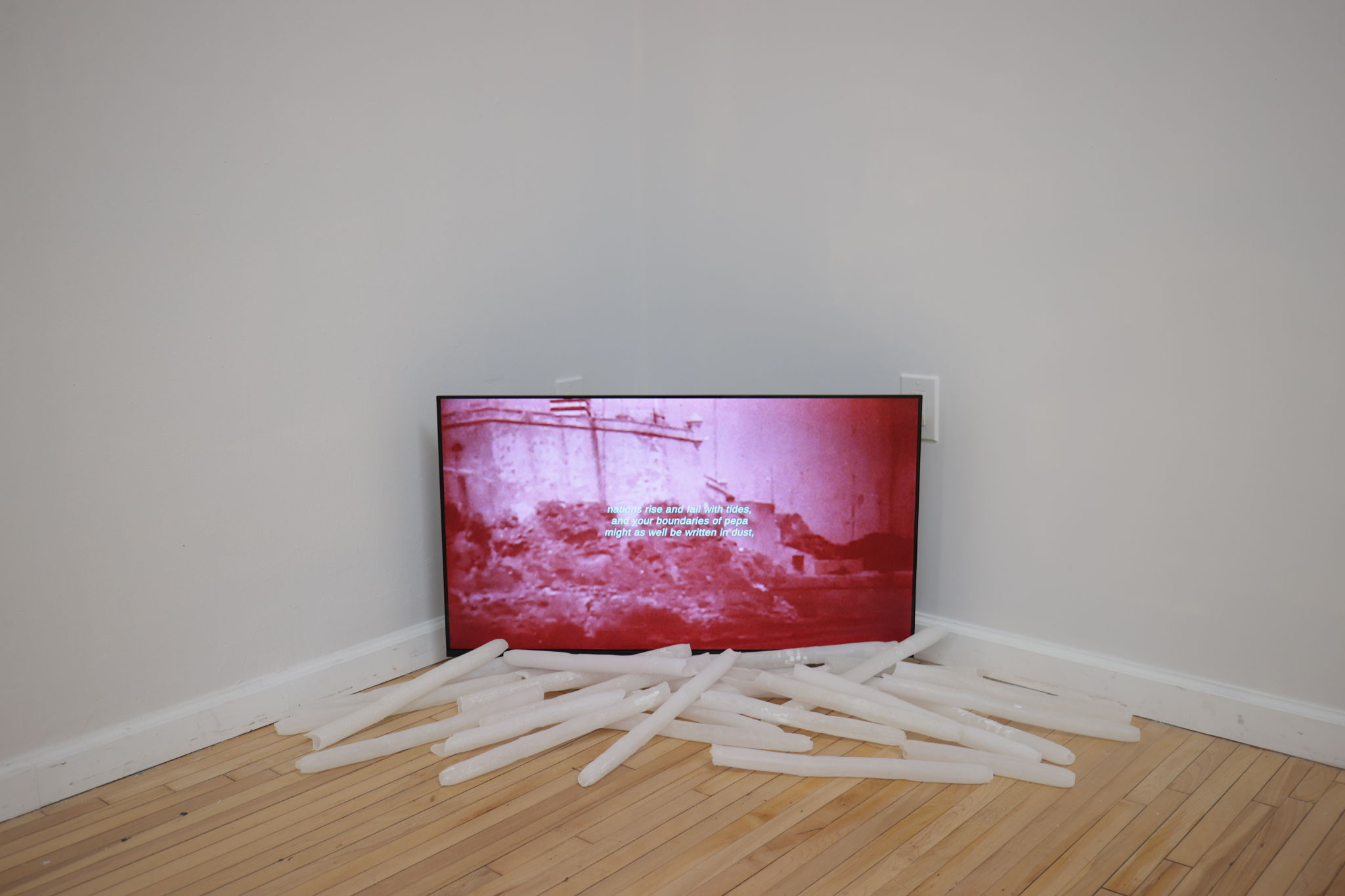 The exhibition showcases a new body of work by Ngô Đình Bảo Châu comprising video installations, sculptures, monumental Trucchigraphy fibre works, and large-scale paintings. Together, these elements attempt to think of the body—not as a fixed vessel, but as a composite, mutable form, constantly in conversation with its environment. This is both a continuation and a reimagination of Bảo Châu’s 2020 solo exhibition Towards Realist Socialization, and it is immediately apparent that her concerns with the social body and the regenerative possibilities of destruction are still very much alive.