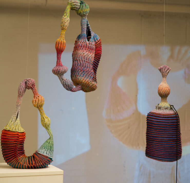 How beautifully badass is that? Emblematic of her practice, Riley depicts the pleasure in one’s own body and the embracement of it in self-portraits based on video stills, like Webcam 2. These images feel all eerily familiar being a sexual human being in the digital myself. But that is the point. Though she depicts her scars, tattoos, her entire torso; as a viewer I can still relate and connect. The framing of her body in her works is often through screens and selfies, which she then caringly recreates on in textile, an act that feels ritualistic. Today we tend to overanalyze our bodies, constantly taking selfies trying to see if we still look the way we remember, that we are desirable and wanted, from moment to moment. Frame to frame. For many, it is our own ritual. Riley forces us to realize and reconsider these actions.