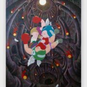 The competing artists were all four New York-based, in one (winning) team, L’amour Supreme and Jappy Agoncillo, both street artists and a graphic designer and illustrators, and the other Jason Naylor and Ross Pino, both painters, Naylor is also a creative director. What struck me is that Secret Walls highlighted artists that operate outside of the white box, not only through their street cred, but also having completed many brand partnerships with majors like Nike, Sponge Bob for Nickelodeon, MF Doom, The Chainsmokers, Miley Cyrus’ Bangerz Tour (L’Amour Supreme), Pepsi, Fanta, MAC x Nordstrom (Naylor), and Disney, Adobe, Red Bull New York (Jappy Agoncillo)—seriously heavy names. Except Ross Pino who has a more traditional artist career having exhibited in galleries. The two teams created one work together in 90 minutes and were judged through the loudest audience response in a gameshow meets boxing match kind of a setting. Simple, but, like during any sports game there were times when spectators were not sure what was going on.